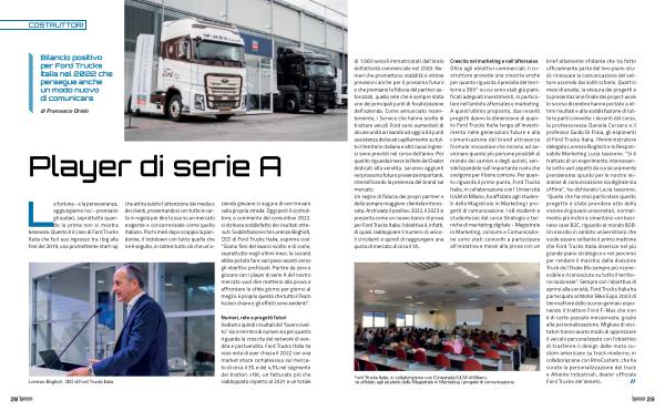 Crescita nel marketing e nell ’ aftersales Oltre agli obiettivi commerciali , il costruttore prevede una crescita anche per quanto riguarda il presidio del territorio a 360 ° su cui sono stati già pianificati adeguati investimenti , in particolare nell ’ ambito aftersales e marketing . A quest ’ ultimo proposito , due recenti progetti danno la dimensione di quanto Ford Trucks Italia tenga all ’ investimento nelle generazioni future e alla comunicazione del brand attraverso formule innovative che mirano ad avvicinare quante più persone possibili al mondo dei camion e degli autisti , sensibilizzandole sull ’ importante ruolo che svolgono per il bene comune . Per quanto riguarda il primo punto , Ford Trucks Italia , in collaborazione con l ’ Università IULM di Milano , ha affidato agli studenti della Magistrale in Marketing i progetti di comunicazione . I 48 studenti e studentesse del corso Strategie e tecniche di marketing digitale - Magistrale in Marketing , consumi e Comunicazione sono stati coinvolti a partecipare all ’ iniziativa e messi alla prova con un