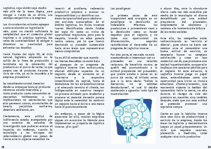 más; pues no siendo suficiente la complejidad que el comercio global imprime a la práctica logística, los retos de sustentabilidad le obligan a dinamizar su creatividad para enfrentar los desafíos.