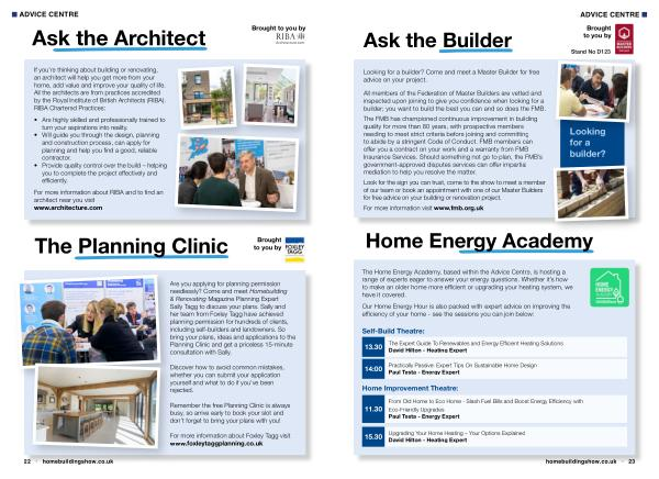 Remember the free Planning Clinic is always busy, so arrive early to book your slot and don’ t forget to bring your plans with you!