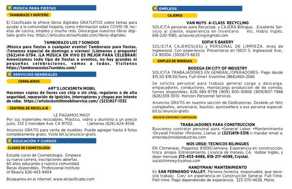 VAN NUYS A-CLASS RECYCLING SOLICITA personas para Recyclaje , y CAJERA Bilingue , . Excelente Servicio al cliente , experiencia en Inventario etc . Hablo Inglés . 818-220-1085 . aclassrecylcing @ gmail . com