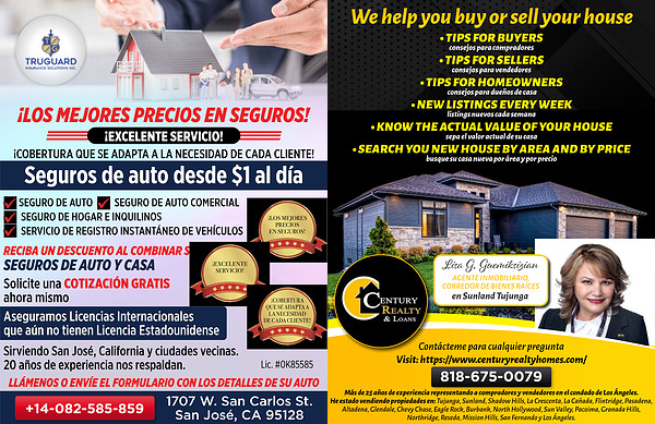 Más de 25 años de experiencia representando a compradores y vendedores en el condado de Los Ángeles . He estado vendiendo propiedades en : Tujunga , Sunland , Shadow Hills , La Crescenta , La Cañada , Flintridge , Pasadena , Altadena , Glendale , Chevy Chase , Eagle Rock , Burbank , North Hollywood , Sun Valley , Pacoima , Granada Hills , Northridge , Reseda , Mission Hills , San Fernando y Los Ángeles .