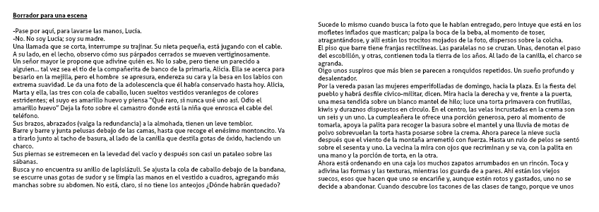 Sucede lo mismo cuando busca la foto que le habían entregado, pero intuye que está en los mofletes inflados que mastican; palpa la boca de la beba, al momento de toser, atragantándose, y allí están los trocitos mojados de la foto, dispersos sobre la colcha.