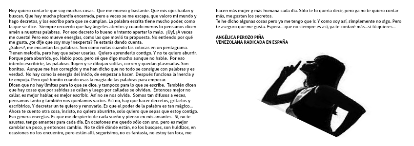 hacen más mujer y más humana cada día. Sólo te lo quería decir, pero ya no te quiero contar más, me gustan los secretos.