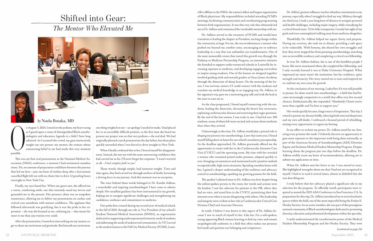The voice behind those words belonged to Dr. Kandis Adkins, a remarkable and inspiring anesthesiologist I have come to admire deeply. Her steadfast guidance has been instrumental in my growth, helping me to navigate significant challenges and strengthening my confidence, resilience and commitment to medicine.