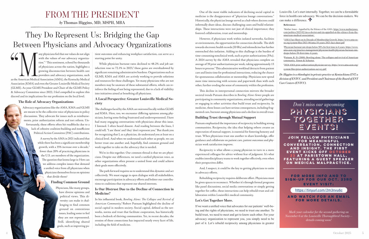 Rebuilding reciprocity requires deliberate effort. Physicians must be given spaces to reconnect. Whether it’ s through formal programs like panel discussions, social media conversations or simply getting together for coffee, these interactions can help rebuild trust and collaboration within Louisville’ s medical community.
