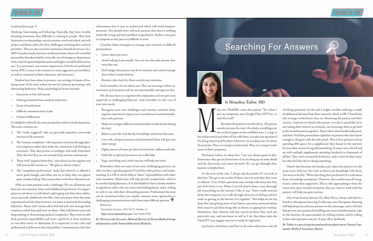 At the start of the visit, I always ask the patient if I can look at their list. This gives me an idea of their concerns and what they want to address. A lot of their questions may overlap with mine, but they just don’ t know it yet. When I can tell they’ ve done a very thorough job researching on the internet I like to say,“ You’ re really worried about this symptom. Let’ s talk through what you are feeling and let’ s work on getting to the bottom of it together.” This helps me do the deep dive into getting more of my history questions answered about their concern and then being able to obtain an appropriate workup. Sometimes, their internet info has convinced them they need one particular test, and you know as well as I do, that those tests the ChatGPT may suggest may not actually be legitimate.