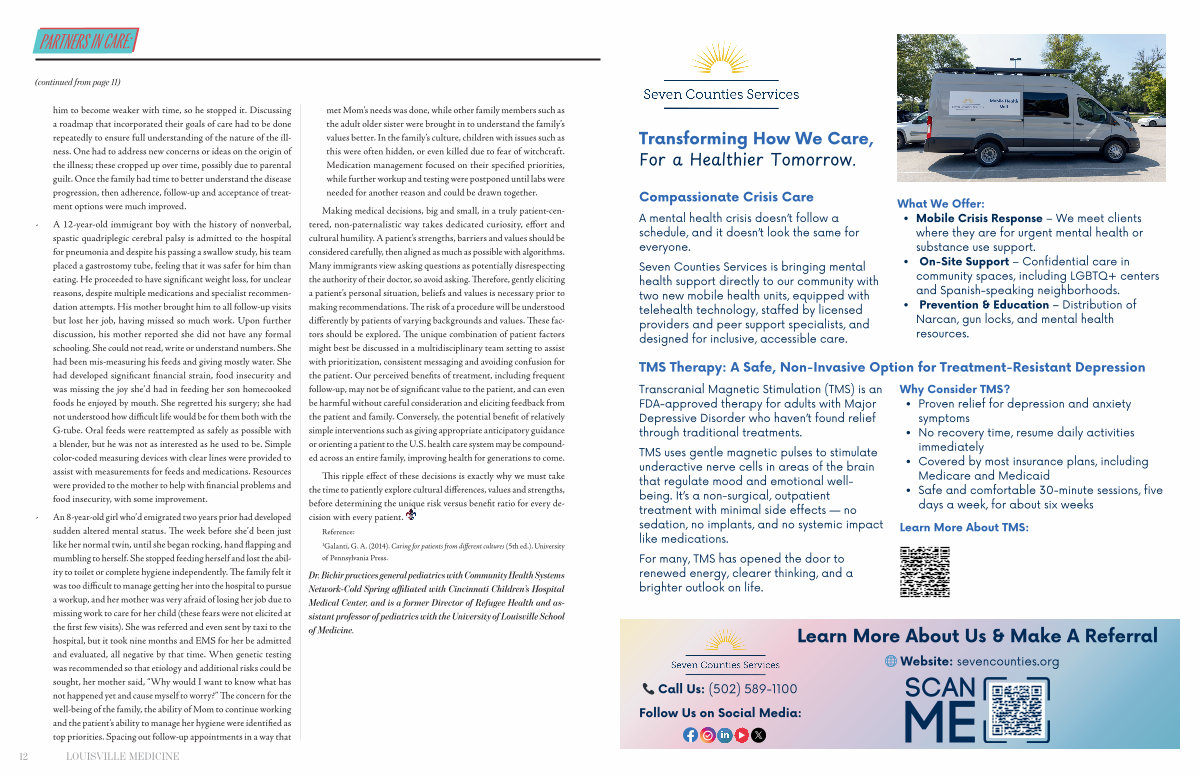 - An 8-year-old girl who’ d emigrated two years prior had developed sudden altered mental status. The week before she’ d been just like her normal twin, until she began rocking, hand flapping and mumbling to herself. She stopped feeding herself and lost the ability to toilet or complete hygiene independently. The family felt it was too difficult to manage getting her into the hospital to pursue a workup, and her mother was very afraid of losing her job due to missing work to care for her child( these fears were not elicited at the first few visits). She was referred and even sent by taxi to the hospital, but it took nine months and EMS for her be admitted and evaluated, all negative by that time. When genetic testing was recommended so that etiology and additional risks could be sought, her mother said,“ Why would I want to know what has not happened yet and cause myself to worry?” The concern for the well-being of the family, the ability of Mom to continue working and the patient’ s ability to manage her hygiene were identified as top priorities. Spacing out follow-up appointments in a way that met Mom’ s needs was done, while other family members such as the adult older sister were brought in to understand the family’ s values better. In the family’ s culture, children with issues such as this were often hidden, or even killed due to fear of witchcraft. Medication management focused on their specified priorities, while further workup and testing were postponed until labs were needed for another reason and could be drawn together.