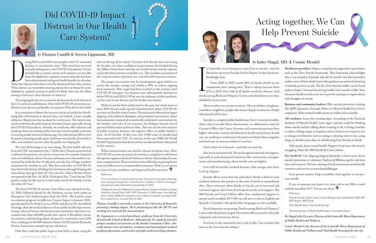 Get involved: Visit afsp. org / chapter / kentucky to learn more about suicide prevention or volunteer. Explore ky988data. org for real-time data and resources. We have a listing of local community mental health resources and services at www. louisvilleky. gov.