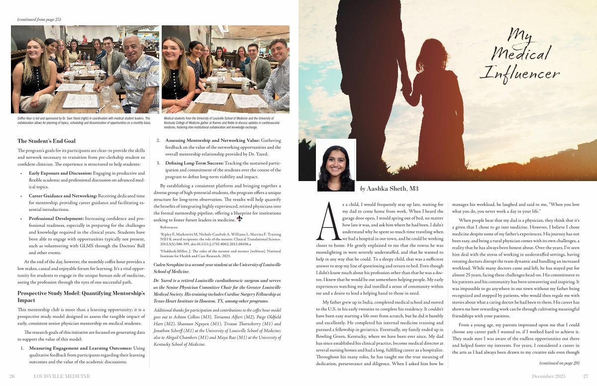 By establishing a consistent platform and bringing together a diverse group of high-potential students, the program offers a unique structure for long-term observation. The results will help quantify the benefits of integrating highly experienced, retired physicians into the formal mentorship pipeline, offering a blueprint for institutions seeking to foster future leaders in medicine.