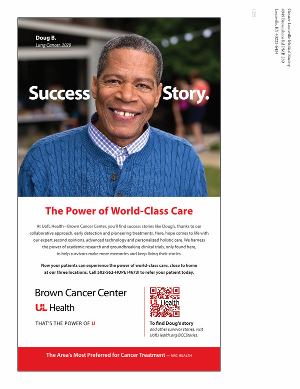 To find Doug’ s story and other survivor stories, visit UofLHealth. org / BCCStories.
