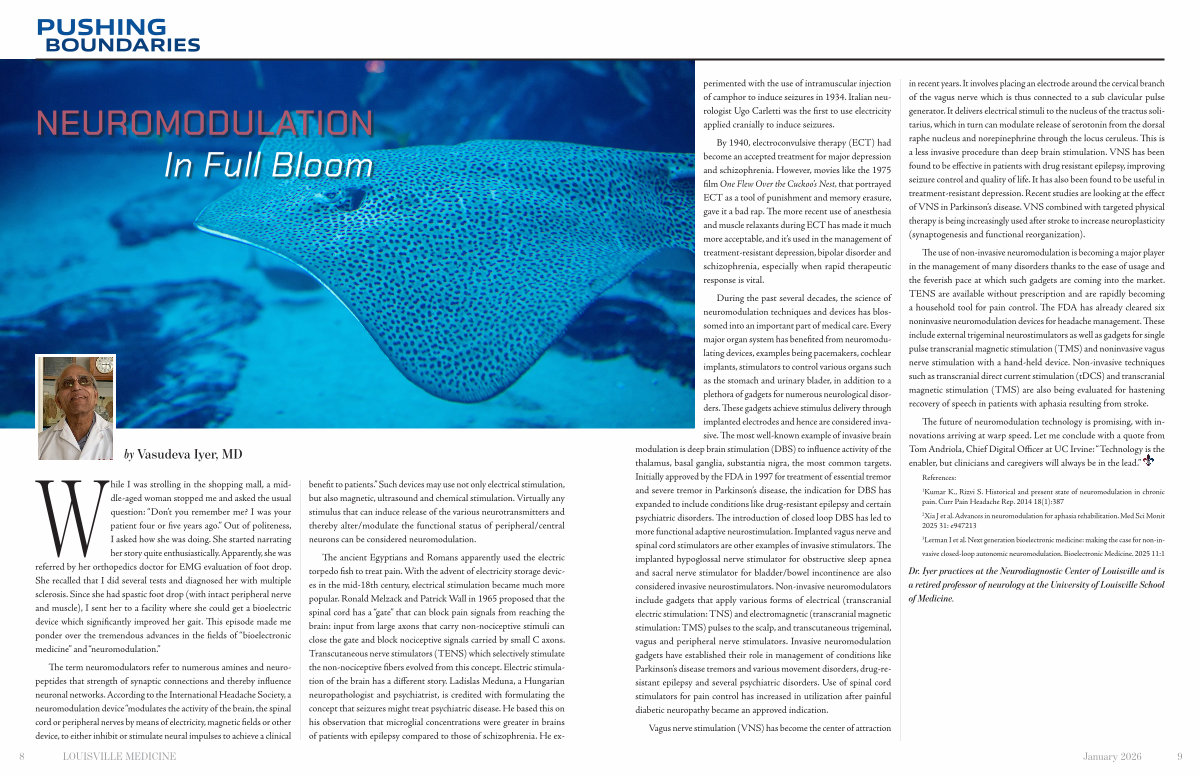 Dr. Iyer practices at the Neurodiagnostic Center of Louisville and is a retired professor of neurology at the University of Louisville School of Medicine.