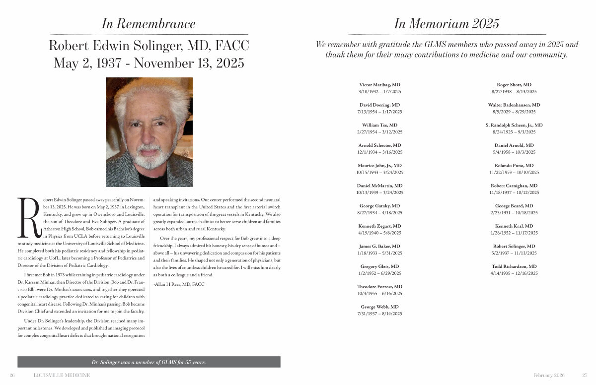 We remember with gratitude the GLMS members who passed away in 2025 and thank them for their many contributions to medicine and our community.