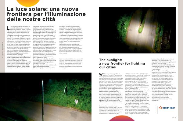 Lazio . Il palo , disponibile in duplice modalità stand alone e ibrida . La tecnologia che lo contraddistingue , messa a disposizione dalle Fonderie Belli , prevede l ’ integrazione del pannello fotovoltaico , dello spessore di 1 mm , con il corpo cilindrico dell ’ infrastruttura e lungo tutta la superficie dello stesso , in modo da catturare la luce solare nel corso dell ’ intera fase diurna della giornata , senza necessità di installare box esterni che potrebbero appesantire il design del palo . Il sistema include una batteria di accumulo ( a litio ) ad alta efficienza , con dimensioni ridotte ed un lungo ciclo di vita , ed un regolatore di carica solare MTTP , in grado di gestire in modo autonomo l ’ accensione e lo spegnimento della luce a seconda della luminosità dell ’ ambiente in cui è collocato , evitando così inutili dispendi di energia . Il palo può inoltre essere gestito da remoto mediante un apposito software che ne verifica le performance e permette di programmare gli orari di accensione e i livelli di illuminamento nei diversi momenti della giornata . Il corpo illuminante è a luce led a 12 o 24V , con una potenza che può variare da 40W fino a 120W a seconda dell ’ altezza del palo , generalmente compresa tra 4 e 12 metri . La tecnologia di palo fotovoltaico sperimentata da Edison Next è in grado di garantire l ’ illuminazione per tre notti anche in condizioni |