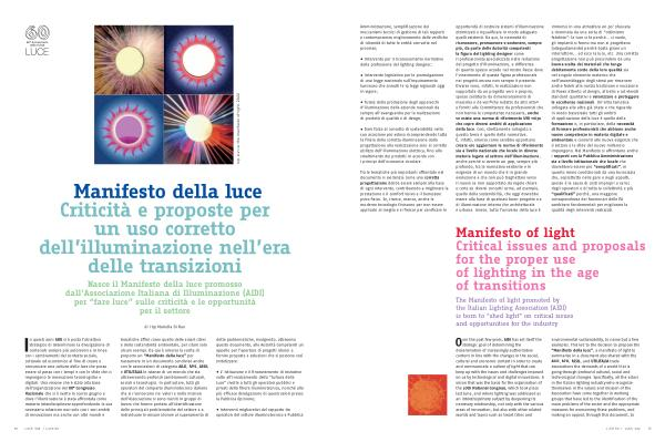 Nasce il Manifesto della luce promosso dall ’ Associazione Italiana di Illuminazione ( AIDI ) per “ fare luce ” sulle criticità e le opportunità per il settore