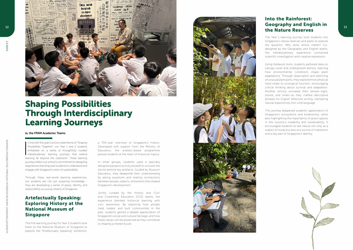 Through these real-world learning experiences, our students are not just acquiring knowledge- they are developing a sense of place, identity and responsibility as young citizens of Singapore.