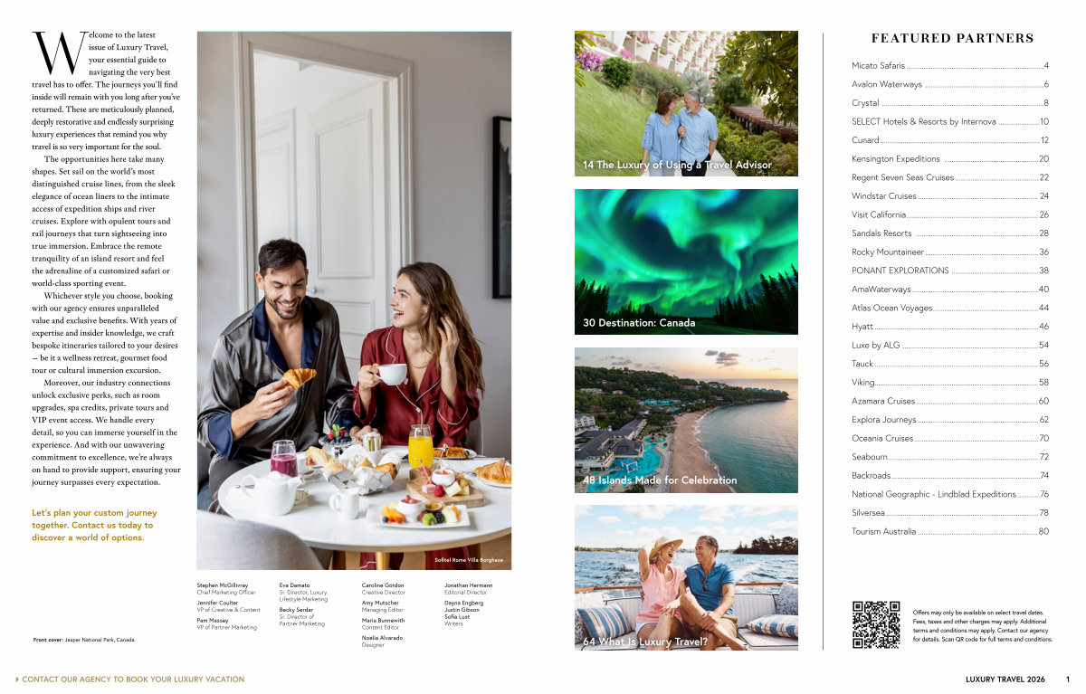 Welcome to the latest issue of Luxury Travel, your essential guide to navigating the very best travel has to offer. The journeys you’ ll find inside will remain with you long after you’ ve returned. These are meticulously planned, deeply restorative and endlessly surprising luxury experiences that remind you why travel is so very important for the soul.