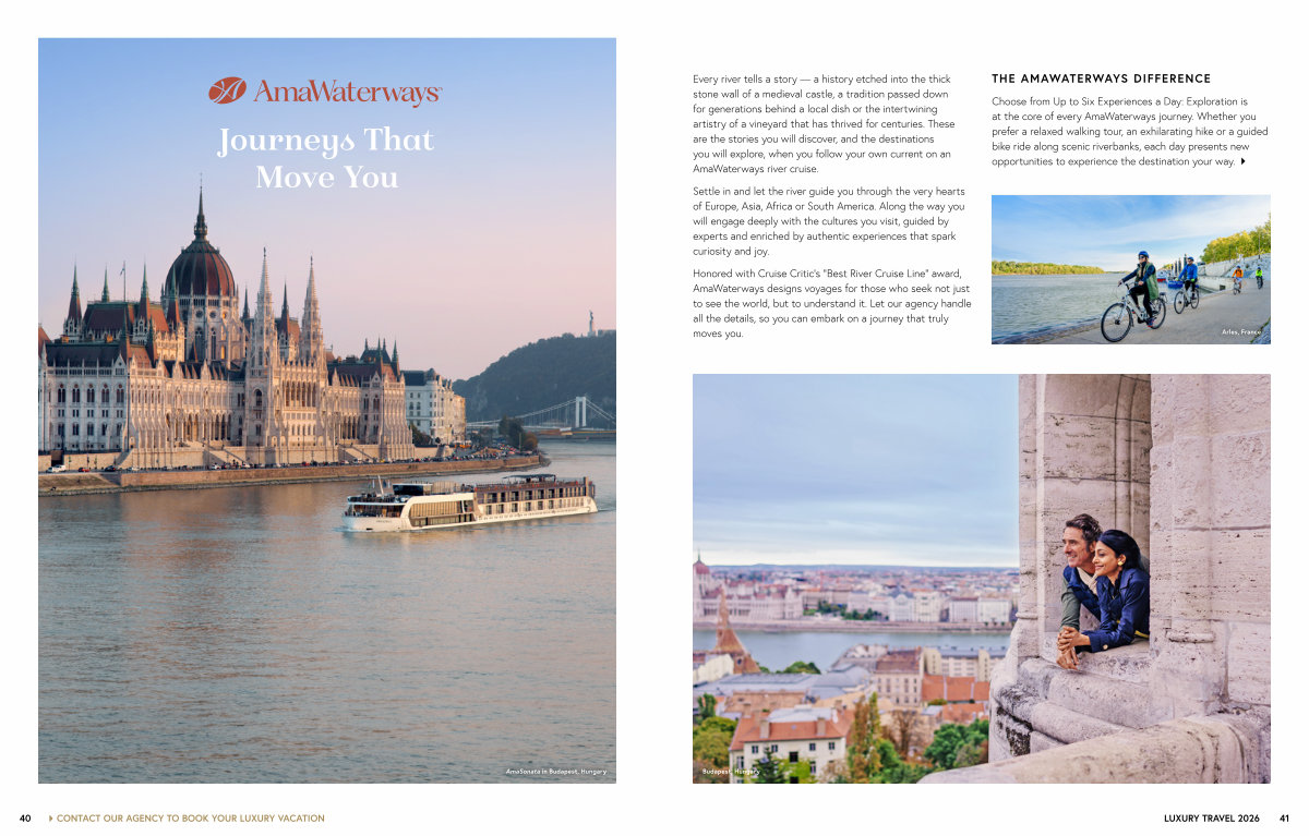Honored with Cruise Critic’ s“ Best River Cruise Line” award, AmaWaterways designs voyages for those who seek not just to see the world, but to understand it. Let our agency handle all the details, so you can embark on a journey that truly moves you.