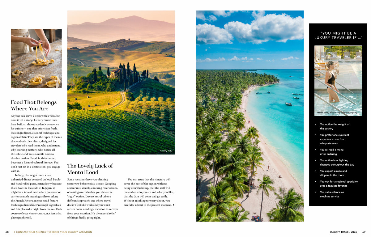 Some vacations have you planning tomorrow before today is over. Googling restaurants, double-checking reservations, obsessing over whether you chose the“ right” option. Luxury travel takes a different approach; one where travel doesn’ t feel like work and you won’ t return home needing a vacation to recover from your vacation. It’ s the mental relief of things finally going right.