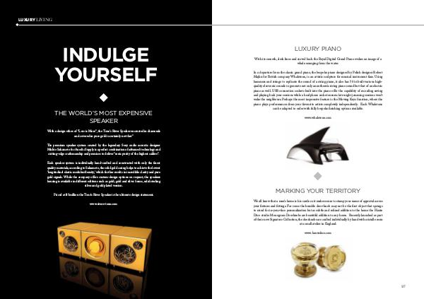 In a departure from the classic grand piano, the bespoke piano designed by Polish designer Robert Majku for British company Whaletone, is an artistic sculpture for musical instrument fans. Using hammers and strings to replicate the sound of a string piano, it also has 50 in built various highquality electronic sounds to generate not only an authentic string piano sound but that of an electric piano as well. USB connection sockets built into the piano offer the capability of recording saving and playing back your sessions while a headphone socket ensures late-night jamming sessions won’ t wake the neighbours. Perhaps the most impressive feature is the Moving Keys function, where the piano plays performances from your favourite artists completely independently. Each Whaletone can be adapted to order with fully bespoke finishing options available.