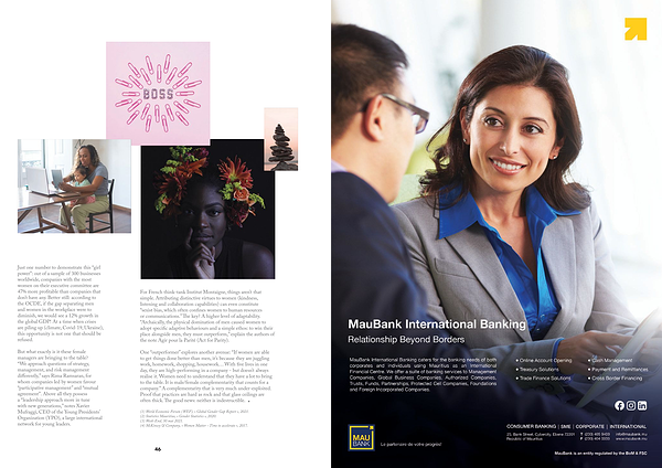 ( 1 ) World Economic Forum ( WEF ), « Global Gender Gap Report », 2021 . ( 2 ) Statistics Mauritius , « Gender Statistics », 2020 . ( 3 ) Week-End , 30 mai 2021 . ( 4 ) McKinsey & Company , « Women Matter - Time to accelerate », 2017 .