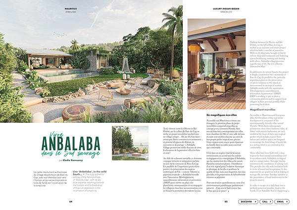 Au-delà de sa beauté naturelle , ce domaine conjugue intimité et intégration parfaite au sein de la commune de Baie du Cap . En parallèle de l ’ importance particulière portée à la préservation des espèces endémiques de l ’ île – comme l ’ illustre sa pépinière tropicale –, Anbalaba travaille avec l ’ association Développement , rassemblement , information et prévention ( DRIP ) pour mettre en place une plateforme communautaire et accompagner les villageois dans leur autonomisation , tout en faisant la promotion des talents locaux .