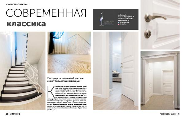 Классический стиль в архитектуре, декоре и, конечно, мебели, ассоциируется с тяжеловесным авторитетом традиций. Но привычные формы в новом прочтении могут заиграть неожиданными красками. Золотая середина между традиционным и актуальными стилями берёт элегантность от одного и совершенство от другого, соединяя их в гармоничный интерьер. Игра контрастов в сочетании с мягкими линиями привносит новые тенденции, а натуральная древесина светлых оттенков дарит ощущение света и воздуха в жилом пространстве. Лучшие традиции европейского дизайна, внимание к деталям, высокое качество материалов и ценные породы дерева— всё это нашло своё место на экспозиционной площадке « Студии уюта и дизайна ». LH
