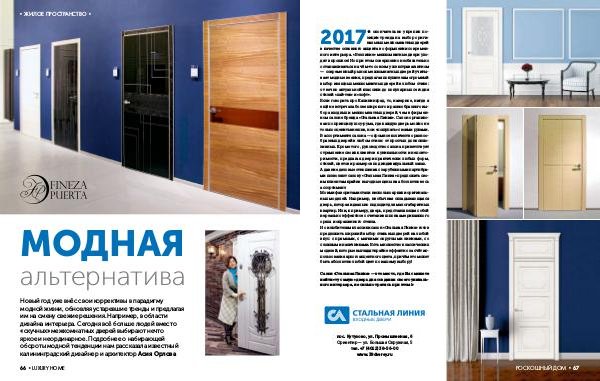2017-й окончательно укрепил позиции тренда на выбор оригинальных межкомнатных дверей в качестве основного акцента в оформлении современного интерьера. « Безликие » межкомнатные двери уходят в прошлое! Но при этом совершенно необязательно останавливаться на чём-то совсем уж экстравагантном— современный рынок межкомнатных дверей учитывает модные веяния, предлагая покупателям огромный выбор изящных межкомнатных дверей в любом стиле: от вечно актуальной классики до популярных сегодня стилей « хай-тек » и « лофт ». Если говорить про Калининград, то, наверное, нигде я ещё не встречала более широкого и разнообразного выбора входных и межкомнатных дверей, чем в фирменном салоне бренда « Стальная Линия ». Салон организован по принципу шоу-рума, где каждую дверь можно не только оценить внешне, но и « пощупать » своими руками. В ассортименте салона— огромное количество разнообразных дверей в любом стиле: от простых до эксклюзивных. Кроме того, руководство салона приветствует стремление своих клиентов к уникальности и неповторимости, предлагая двери практически любых форм, стилей, цветов и размеров под индивидуальный заказ. А давние деловые отношения с зарубежными партнёрами позволяют салону « Стальная Линия » предложить своим клиентам крайне выгодные цены на абсолютно весь ассортимент. Моими фаворитами стали несколько ярких и оригинальных моделей. Например, необычная складывающаяся дверь, которая идеально подходит для малогабаритных квартир. Или, к примеру, дверь, представляющая собой нереально эффектное сочетание шпона американского ореха и окрашенного стекла. Но и любителям классики салон « Стальная Линия » готов предложить широкий выбор стильных дверей на любой вкус: с прямыми, с мягкими округлыми линиями, со сложными наличниками. Есть множество классических моделей, которые выглядят крайне эффектно за счёт использования яркого акцентного цвета, причём это может быть абсолютно любой цвет по вашему выбору!