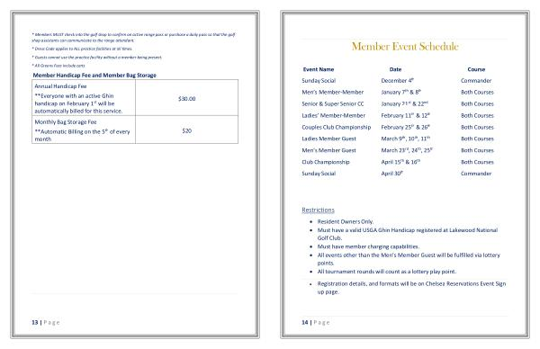 Member Handicap Fee and Member Bag Storage Annual Handicap Fee
