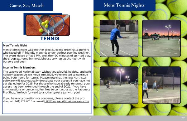 The Lakewood National team wishes you a joyful , healthy , and safe holiday season ! As we move into 2025 , we ’ re excited to continue being your home for tennis . Please note that the new Northstar software will automatically deactivate your access if you have not yet signed up for 2025 . For those who have already renewed , your access has been extended through the end of 2025 . If you have any questions or concerns , feel free to contact us at the Racquets Pro Shop . We look forward to another great year with you !