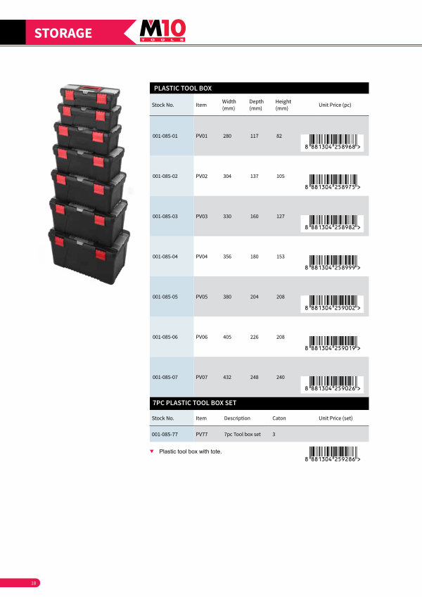 7PC PLASTIC TOOL BOX SET
