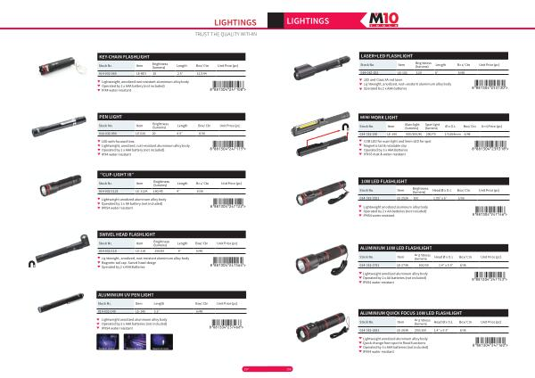 Lightweight anodized aluminum alloy body Operated by 1 x AA battery ( not included ) IPX54 water resistant