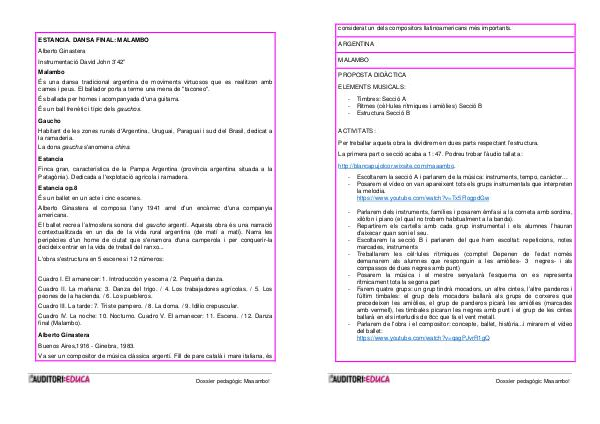 ESTANCIA. DANSA FINAL: MALAMBO Alberto Ginastera Instrumentació David John 3’ 42” Malambo