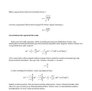 kus c on valguse kiirus vaakumis, G on gravitatsioonikonstant ja M on taevakeha mass. Rs( Schwarzschildi pind) on täiesti tsentraalsümmeetriline ehk kerakujuline ja mittepöörlev. Selle kera ruumala( ühikuks m 3) on avaldis