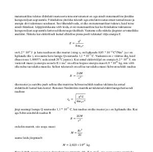 on 6,2 * 10 43 J ja kera raadius on üks meeter( ning ɛ 0 on ligikaudu 8,85 * 10-12 C 2 / Nm 2 ja ɛ on ligikaudu üks), siis saame kera laengu Q suuruseks 1,1 * 10 17 C. Vaakumis on ɛ väärtus üks, kuid õhus on see 1,00057( seda ainult 20 0 C juures). Kui antud elektriväljal on energia 6,2 * 10 43 J, siis vastavalt massi ja energia seosele E = mc 2 on sellise koguse energia mass 6,9 * 10 26 kg, mis võib olla mõne taevakeha massiks. Sellest tulenevalt on sellise taevakeha massi Schwarzschildi raadius