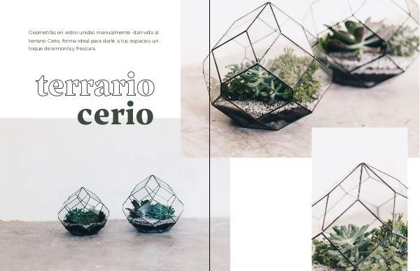 GeometrÃas en vidrio unidas manualmente dan vida al terrario Cerio, forma ideal para darle a tus espacios un toque de armonÃa y frescura. cerio