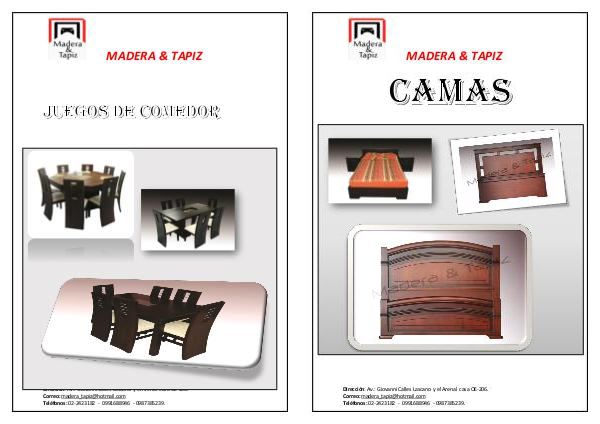 MADERA & TAPIZ Dirección: Av.: Giovanni Calles Lascano y el Arenal casa OE-206. Correo: madera_tapiz@hotmail.com Teléfonos: 02-2423182 - 0991688946 - 0987385239.