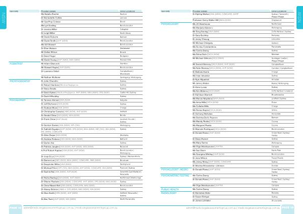 Dr Joey Q Le | WIA ( NSW ) Dr Darren Lee | IMC ( NSW ), MAA ( NSW ), COMCARE , AMS ( NSW ) Dr Deepinder Miller | WIA ( NSW ) Dr Michael Prior | WPI ( TAS ), MAS ( NSW ), AHP ( NSW ), COMCARE , WIA ( NSW )