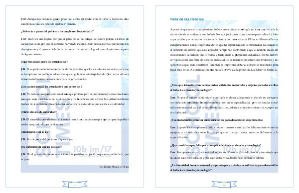 A pesar de que nuestro colegio tiene énfasis en ciencia y tecnología, no tiene una feria de la ciencia donde se evidencia este énfasis. No se adjudica tanto presupuesto para realizarla, falta capacitación y es necesario relacionar la ciencia con otros saberes. El desarrollo científico es indudablemente el más importante de los que ha experimentado la humanidad. La ciencia es el conjunto de saberes que a lo largo del tiempo han contribuido a que el hombre enlace un conocimiento del mundo que lo rodea, y también de su propia individualidad. Por tal motivo es vital realizar una feria de ciencias en la cual los estudiantes presenten sus productos y así se motive a que sean científicos. También es importante dotar al colegio de materiales para hacer más cosas. A continuación, una breve entrevista a la profesora Luz Mery de Química