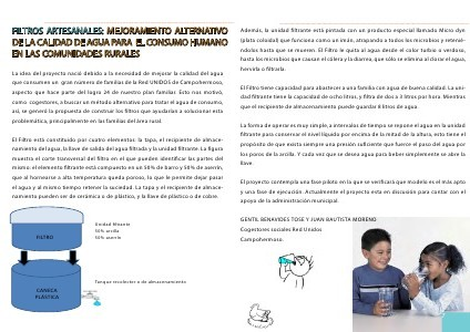 FILTROS ARTESANALES: MEJORAMIENTO ALTERNATIVO DE LA CALIDAD DE AGUA PARA EL CONSUMO HUMANO EN LAS COMUNIDADES RURALES