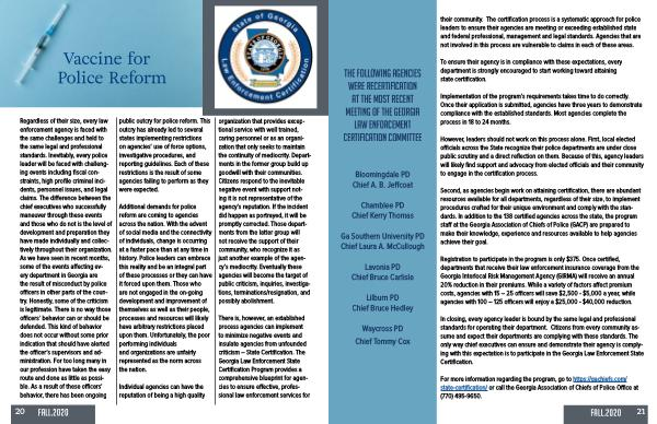 There is , however , an established process agencies can implement to minimize negative events and insulate agencies from unfounded criticism – State Certification . The Georgia Law Enforcement State Certification Program provides a comprehensive blueprint for agencies to ensure effective , professional law enforcement services for