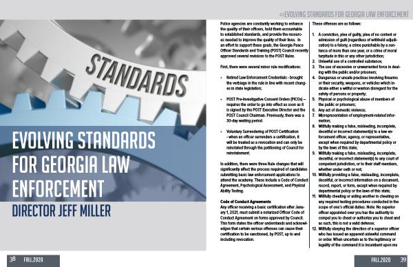Police agencies are constantly working to enhance the quality of their officers , hold them accountable to established standards , and provide the resources needed to improve the quality of their lives . In an effort to support these goals , the Georgia Peace Officer Standards and Training ( POST ) Council recently approved several revisions to the POST Rules .