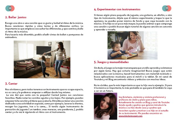 Actualmente he creado un Blog y canal de Youtube donde ayudo a padres que quieran introducir la música a su hijo desde casa y a padres que necesiten ayudar y motivar a su hijo en el estudio de su instrumento. Me puedes encontrar en www.kindermozart.com