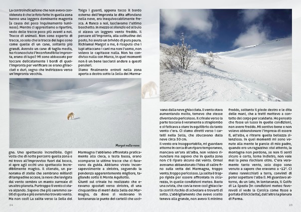 Richiamai Margot a me, è risaputo che i lupi attaccano i cani ma non l’uomo, non volevo le capitasse nulla. Non ho con-diviso nulla con Marco, in quei momenti non è un bene lasciarsi andare a questi pensieri.