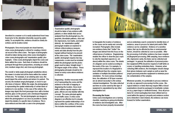 Processing the Scene Crime scene investigations are a running checklist , requiring on-going prioritization of evidence and investigative acts . After the scene has been properly documented