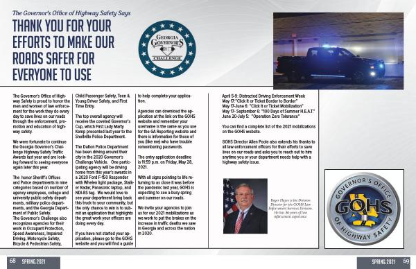GOHS Director Allen Poole also extends his thanks to all law enforcement officers for their efforts to save lives on our roads and asks you to reach out to him anytime you or your department needs help with a highway safety issue .