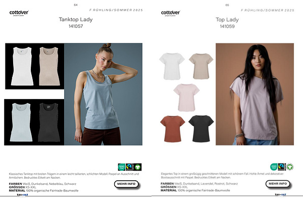 FARBEN Weiß , Dunkelsand , Lavendel , Rostrot , Schwarz GRÖSSEN XS-XXL MATERIAL 100 % organische Fairtrade-Baumwolle