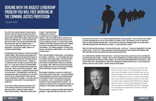 Jack Enter began his law enforcement career in 1972 . Since that time , he has worked as a street police officer , detective , vice / narcotics investigator , and as the administrator of a law enforcement agency in the suburbs of Atlanta . Jack obtained his Ph . D . in 1984 and has served as a professor and administrator in the university setting and served as one of the planners of the security component of the 1996 Summer Olympic Games in Atlanta . He has lectured throughout the United States and abroad . He published his first book : Challenging the Law Enforcement Organization : Proactive Leadership Strategies in 2006 .