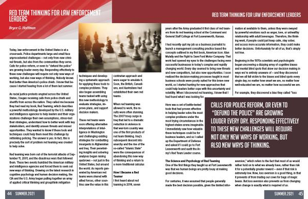 Here was a set of battle-tested tools that had proven effective in helping leader solve the most complex problems under the most trying circumstances in the highest-stakes arena imaginable . I immediately saw how valuable these techniques could be for business leaders , and so I called up the Department of Defense and asked if I could go to Fort Leavenworth and audit the Army ’ s Red Team Leader course .