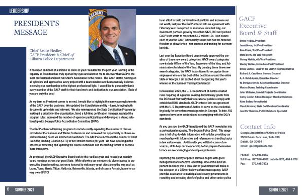 As you can see , the GACP transitioned the GACP newsletter into a professional magazine , The Georgia Police Chief . This magazine is full of up-to-date information with articles providing our membership with information and references on trending topics in law enforcement . Additionally , you will find scores of resources , all to help our membership better prepare themselves to face an ever changing and complex profession .
