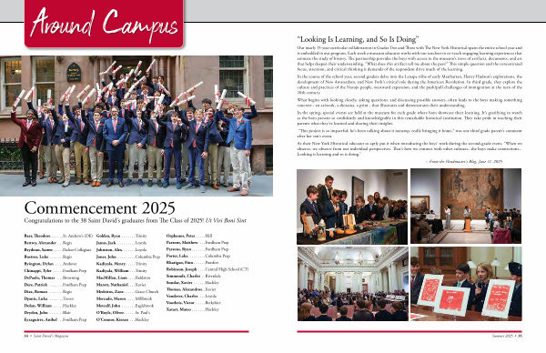 Saint David’ s School justifiably prides itself on its unique abilities to address the learning needs of boys, with a clear mission in mind. These abilities are hard earned, developed by teachers in the context of ongoing professional development. Our recent work as teachers in reflective practice builds on the TBI foundation and carries us forward. These forms of teacher learning are necessary in the context of the present and a rapidly changing future; they define the dedicated work of our clinical profession. It is important to recognize that whether we are coaching students on the soccer field, helping them to write persuasive essays or to speak Spanish fluently, our teaching is defined by modes of engagement that hold students to the highest expectations, cognitively and emotionally, asking them to practice the very qualities that are the characteristics of good men. •